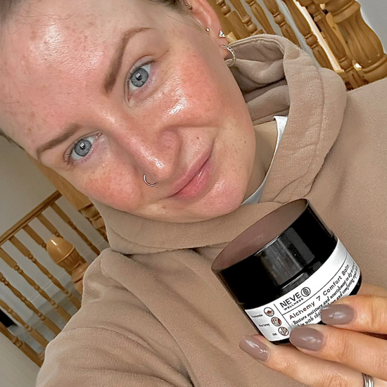 Restore dry, stressed skin with our green goddess, Alchemy 7 Comfort Balm. This concentrated balm is infused with 7 plant extracts to restore and deeply moisturise skin. We use a ceramide-rich oat extract and calming and soothing chamomile, along with our in-house infusion of marshmallow root, calendula, chickweed, plantain, and nettle.